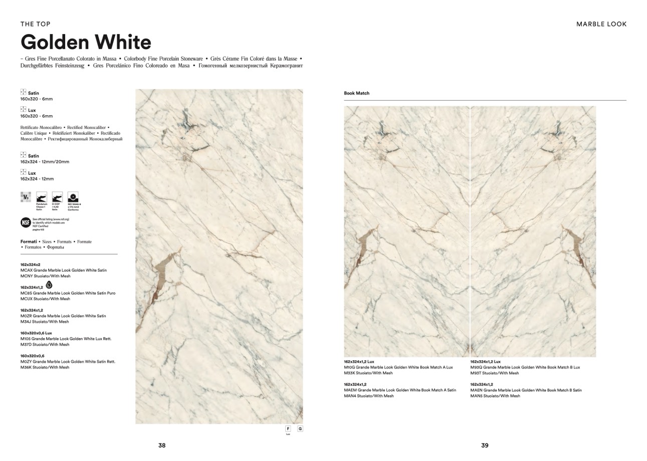 MAEM Grande Marble Look Golden White Book Match A Satin
