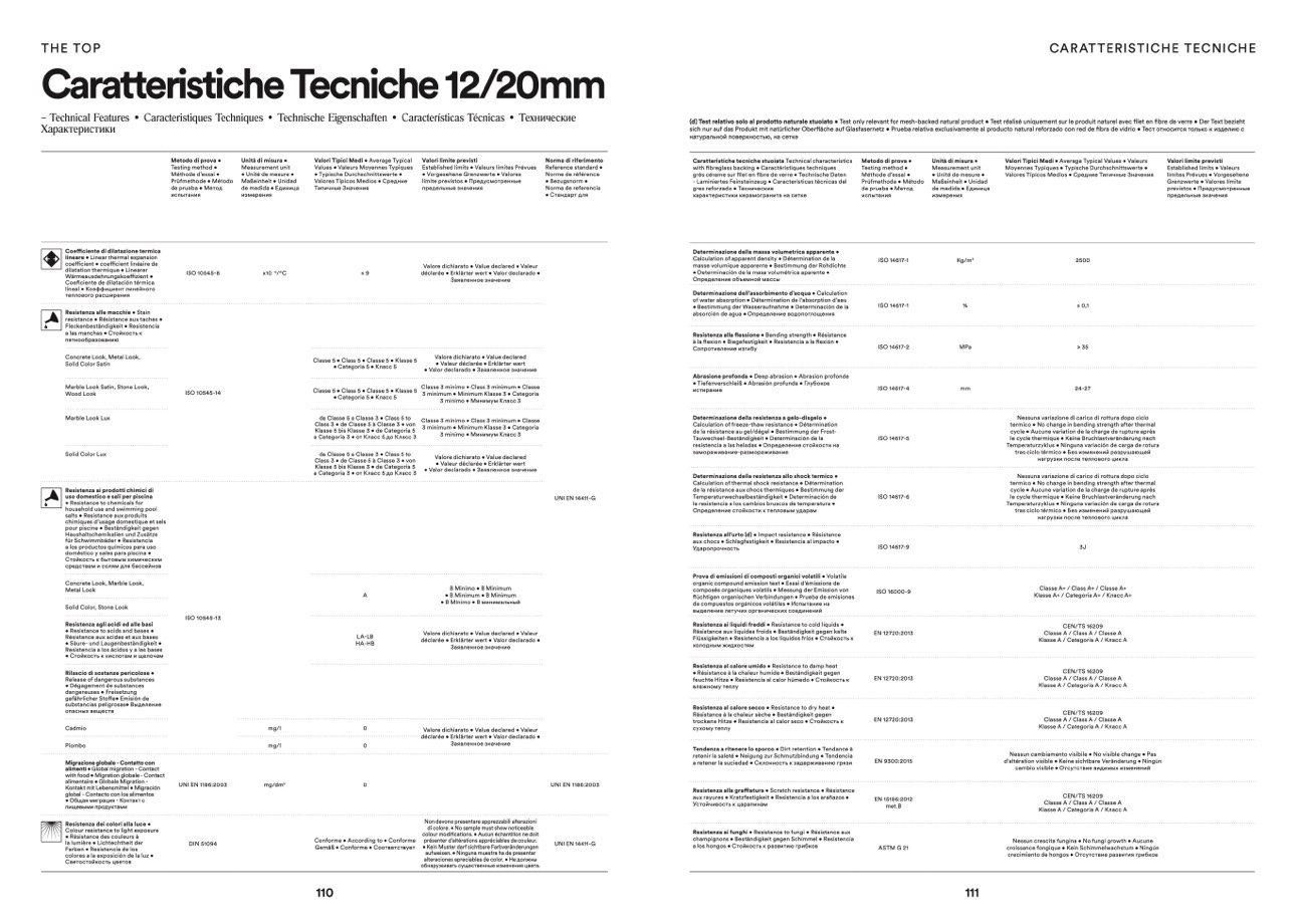 - Laminiertes Feinsteinzeug • Características técnicas del