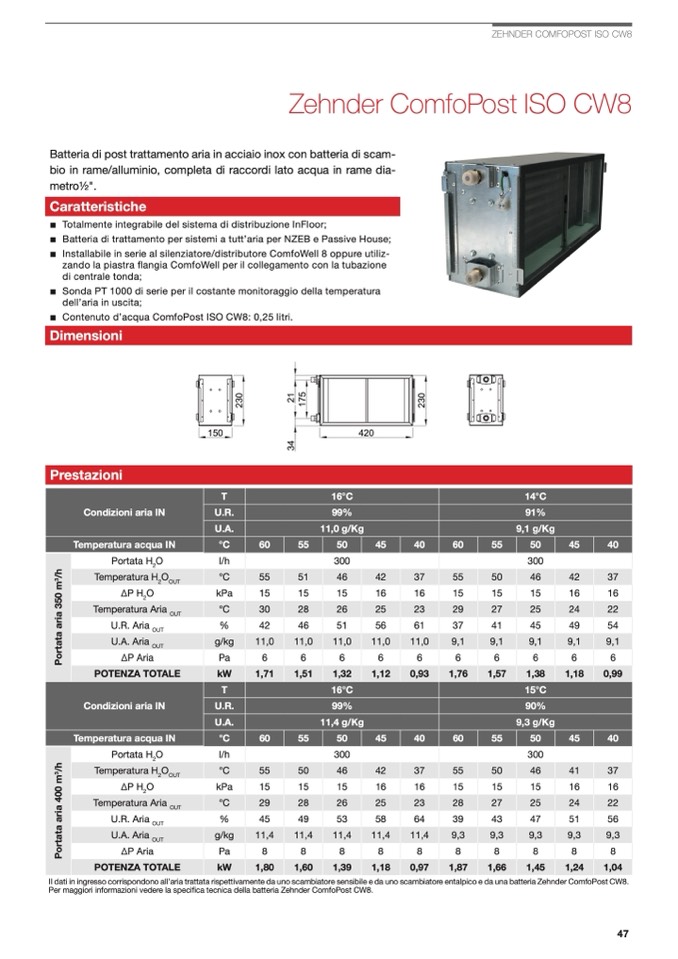 Per maggiori informazioni vedere la specifica tecnica della batteria Zehnder ComfoPost CW8.