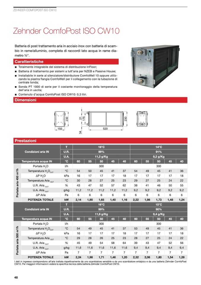 I dati in ingresso corrispondono all’aria trattata rispettivamente da uno scambiatore sensibile e da uno scambiatore entalpico e da una batteria Zehnder ComfoPost