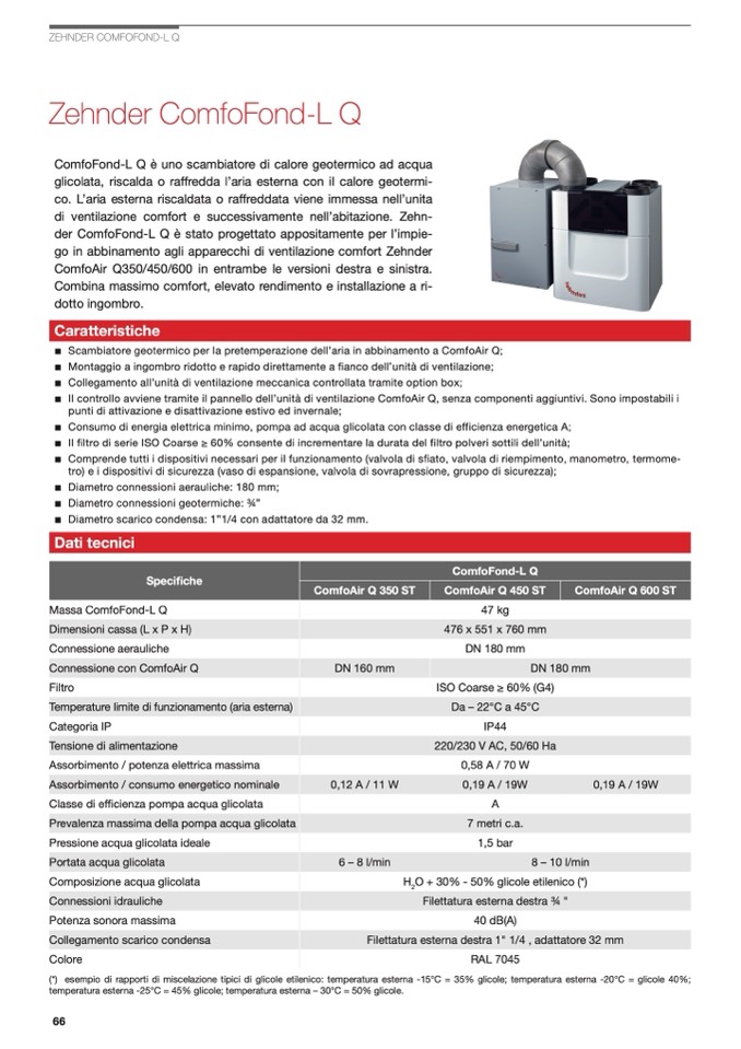 ■ Scambiatore geotermico per la pretemperazione dell’aria in abbinamento a ComfoAir Q;