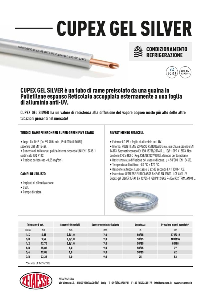 Cupex-gel SILVER 1/4X1 EN 12735-1 IGQ P112 GAS R410A R32 TRIM. ANNO L.