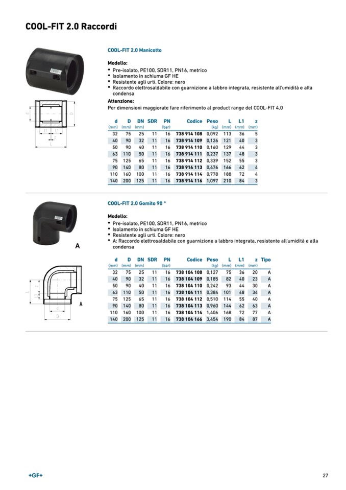 Per dimensioni maggiorate fare riferimento al product range del COOL-FIT 4.0
