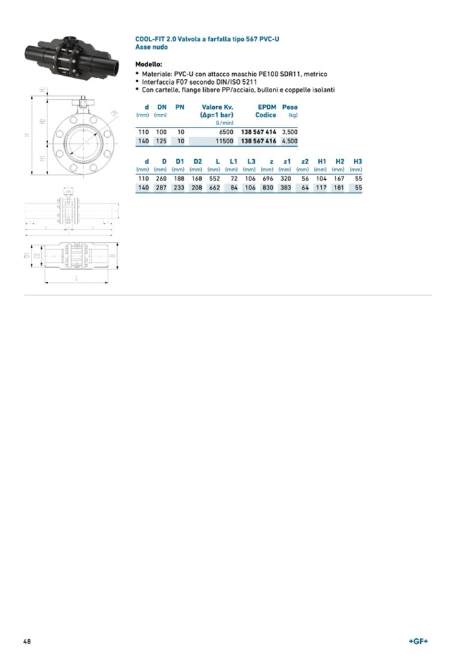 COOL-FIT 2.0 Valvola a farfalla tipo 567 PVC-U