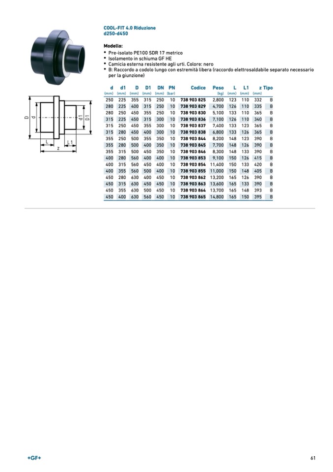 B: Raccordo a codolo lungo con estremità libera (raccordo elettrosaldabile separato necessario