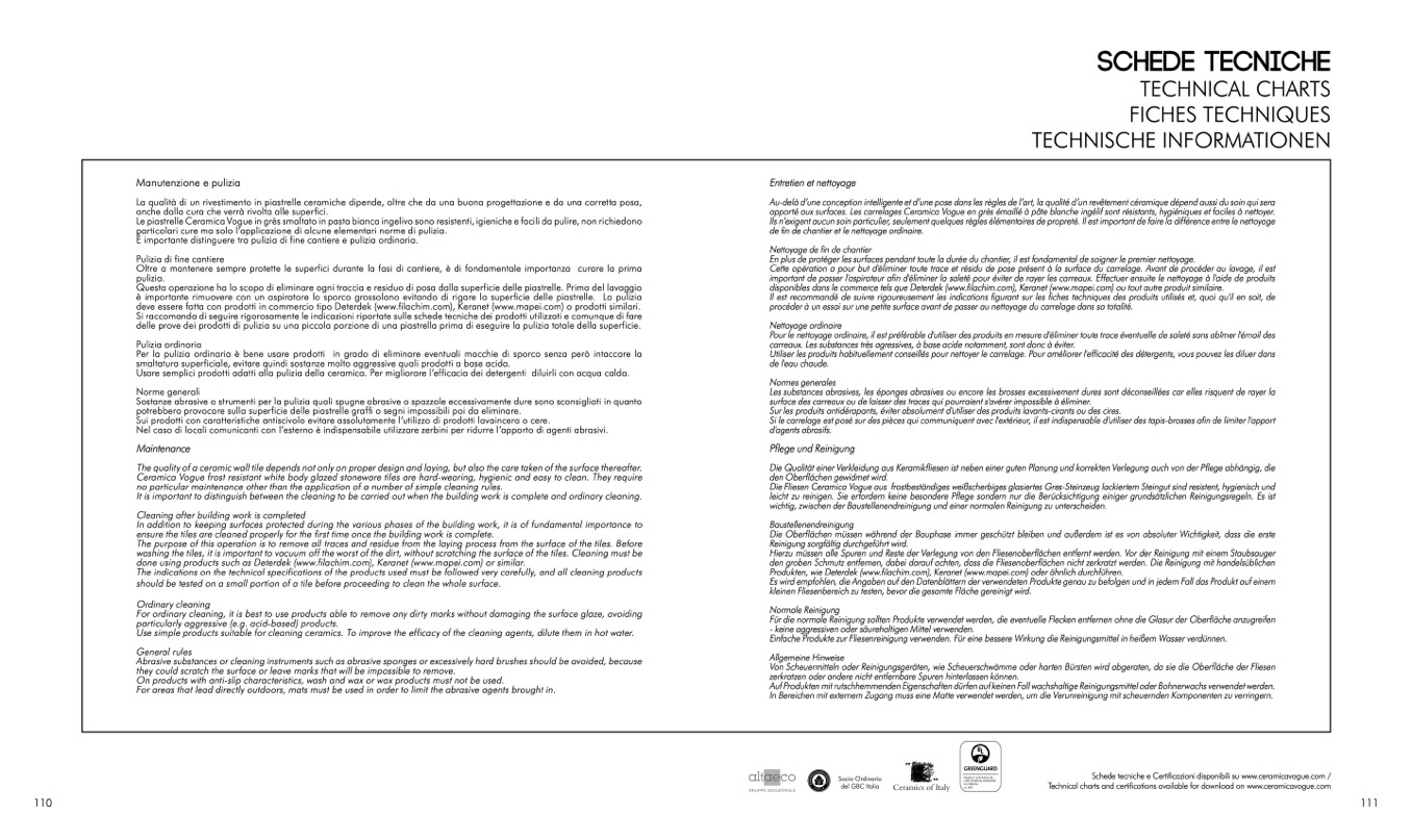 Schede tecniche e Certificazioni disponibili su www.ceramicavogue.com /
