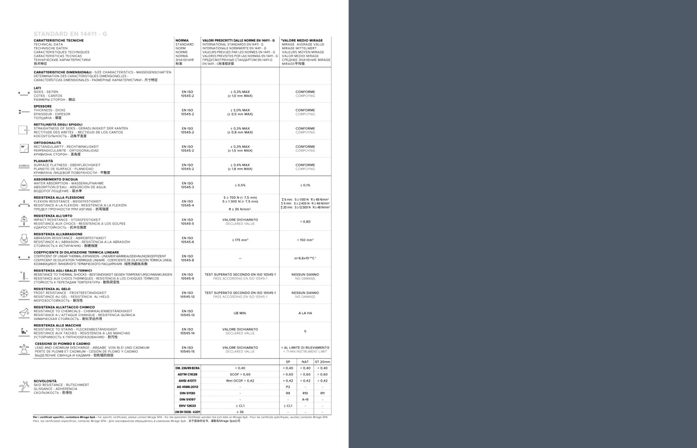 VALORI PRESCRITTI DALLE NORME EN 14411 - G