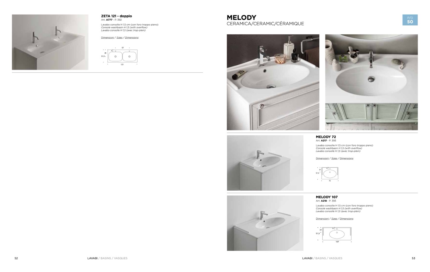 Lavabo consolle H 1,5 cm (con foro troppo pieno)