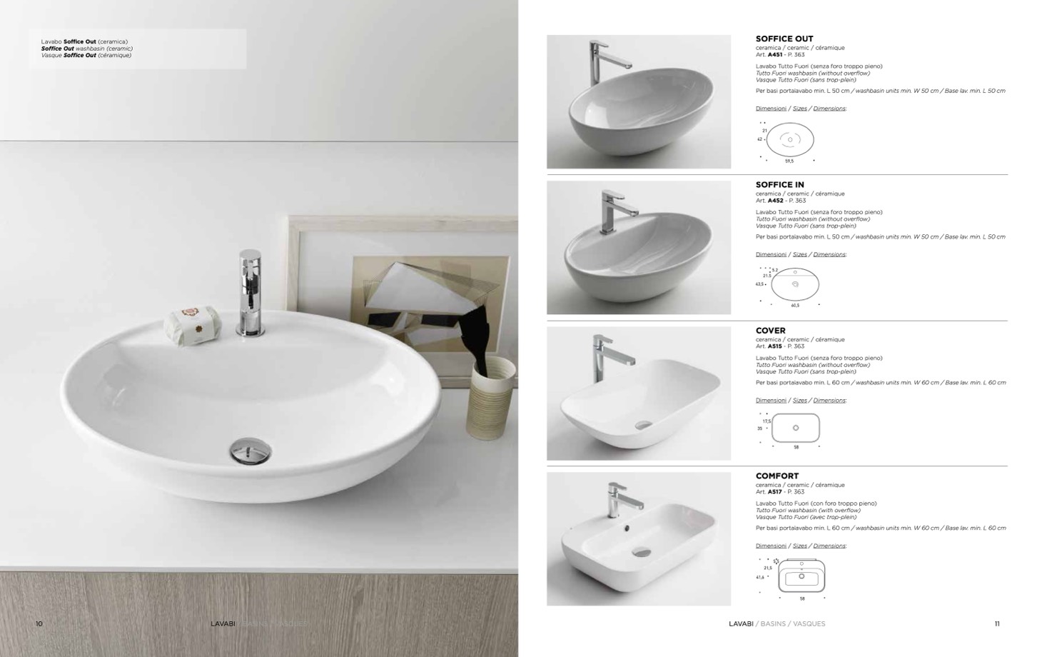Per basi portalavabo min. L 60 cm / washbasin units min. W 60 cm / Base lav. min. L 60 cm