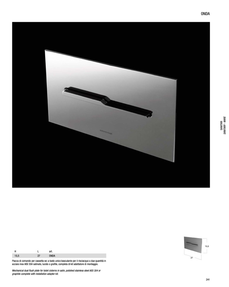 Mechanical dual flush plate for toilet cisterns in satin, polished stainless steel AISI 304 or