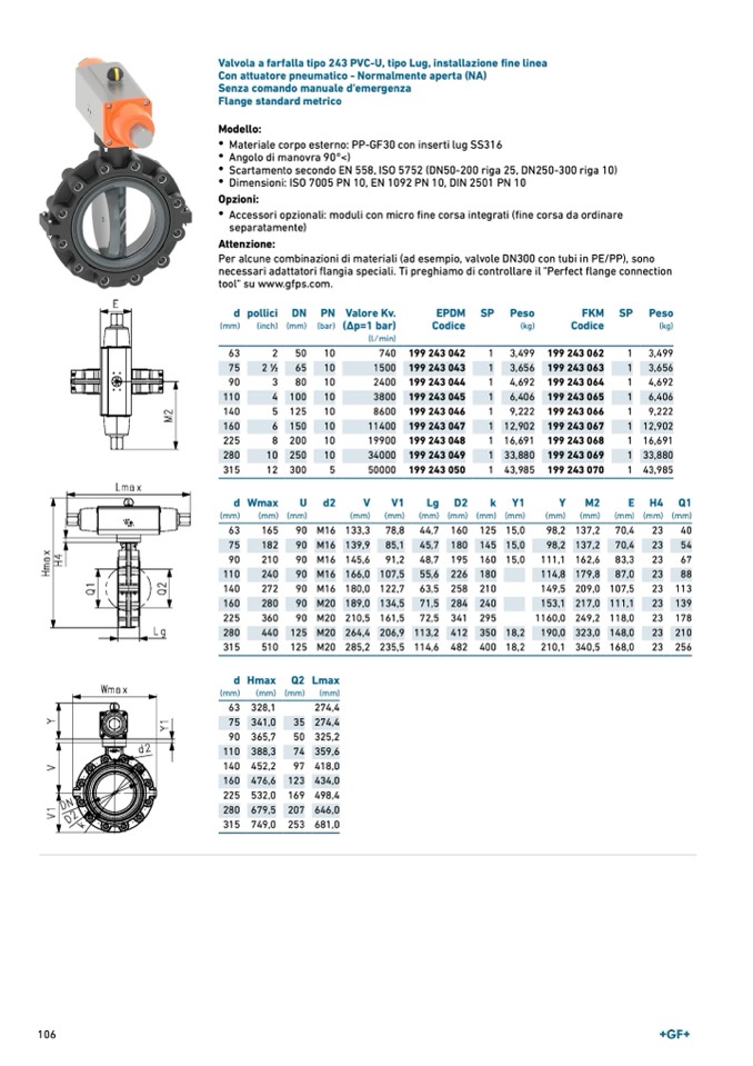 Valvola a farfalla tipo 243 PVC-U, tipo Lug, installazione fine linea