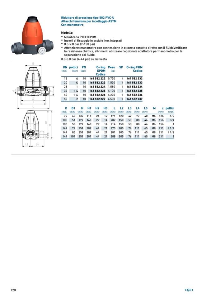 Riduttore di pressione tipo 582 PVC-U