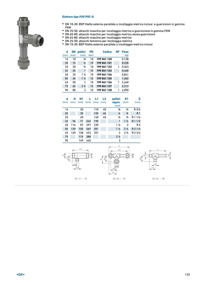Eiettore tipo P20 PVC-U