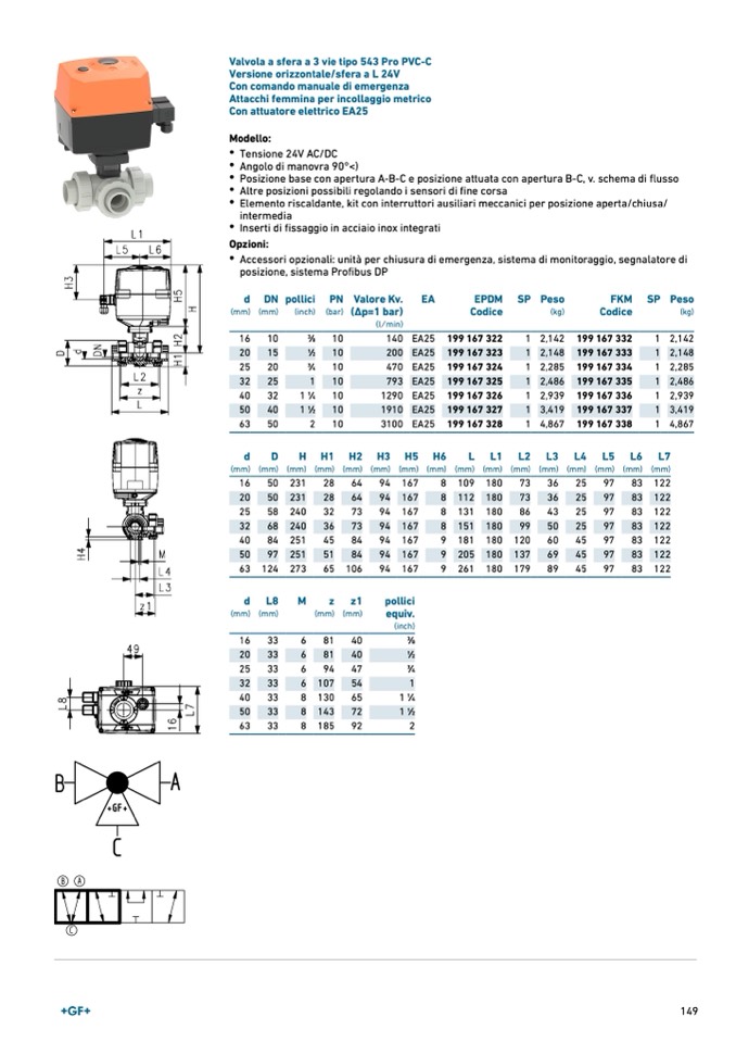 Valvola a sfera a 3 vie tipo 543 Pro PVC-C
