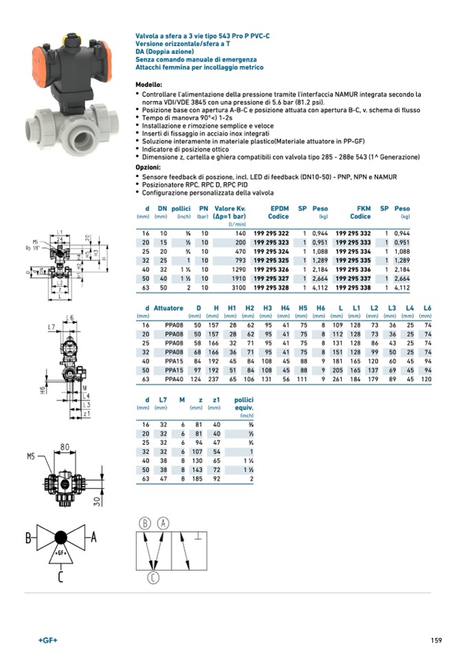 Valvola a sfera a 3 vie tipo 543 Pro P PVC-C