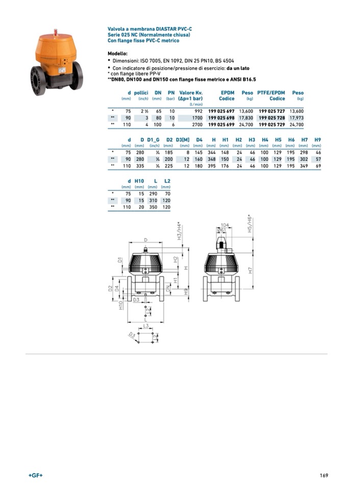**DN80, DN100 and DN150 con flange fisse metrico e ANSI B16.5