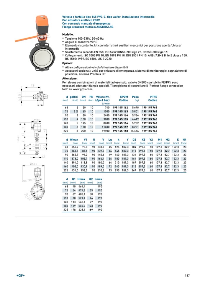Valvola a farfalla tipo 145 PVC-C, tipo wafer, installazione intermedia