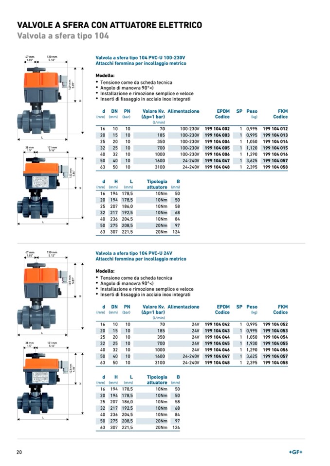 Valvola a sfera tipo 104 PVC-U 100-230V
