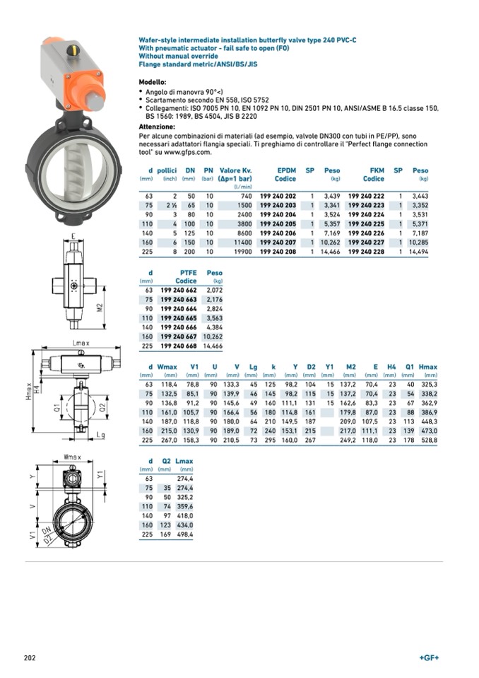Wafer-style intermediate installation butterfly valve type 240 PVC-C