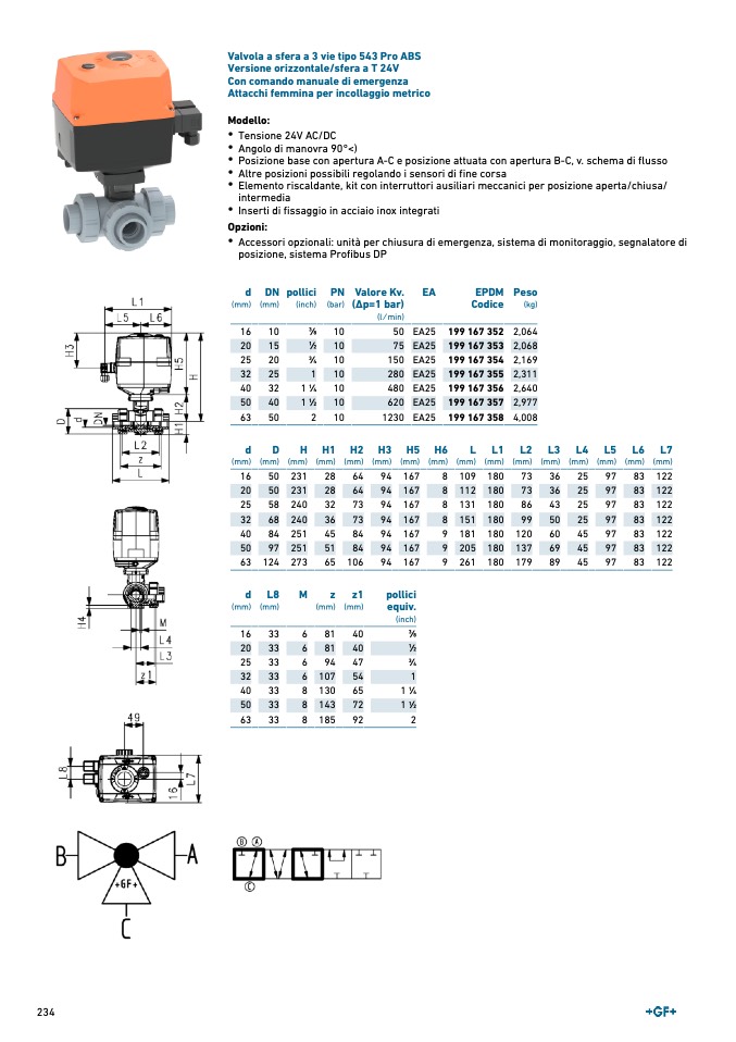 Valvola a sfera a 3 vie tipo 543 Pro ABS
