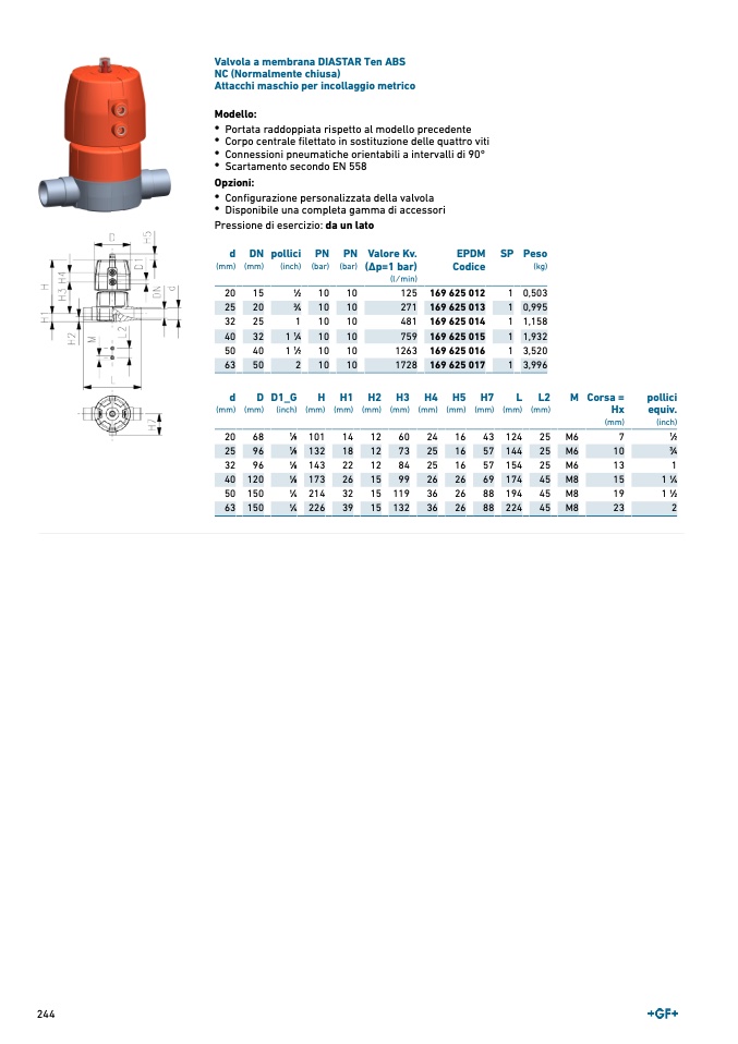 Valvola a membrana DIASTAR Ten ABS