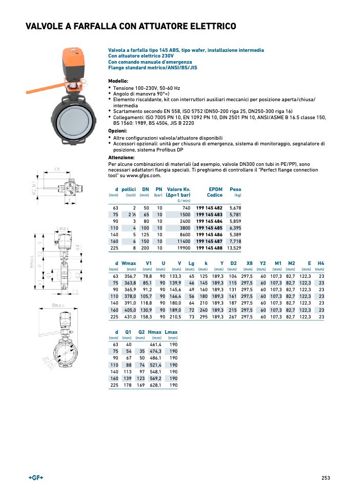 Valvola a farfalla tipo 145 ABS, tipo wafer, installazione intermedia