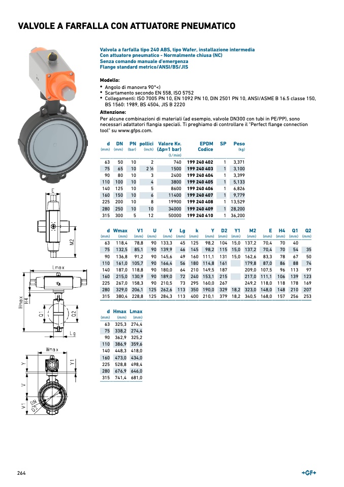 Valvola a farfalla tipo 240 ABS, tipo Wafer, installazione intermedia