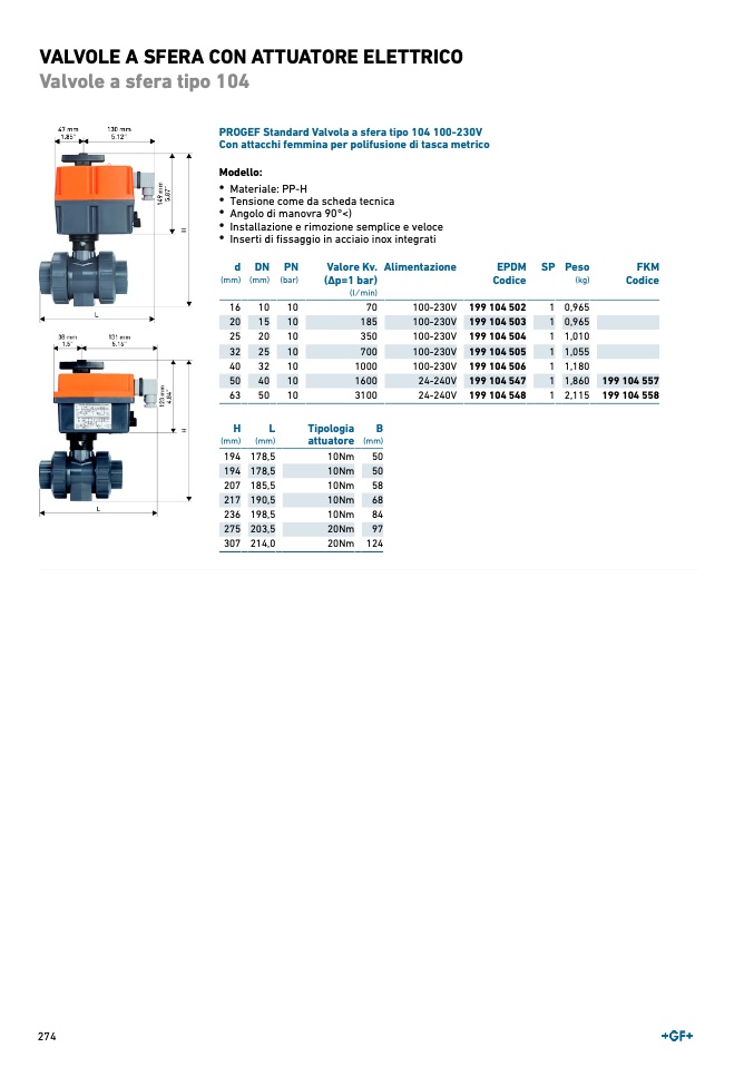 PROGEF Standard Valvola a sfera tipo 104 100-230V