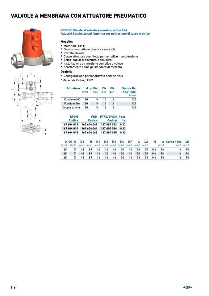 PROGEF Standard Valvola a membrana tipo 604