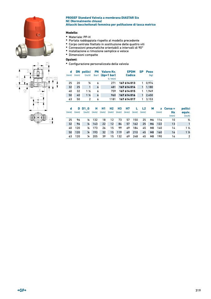 PROGEF Standard Valvola a membrana DIASTAR Six