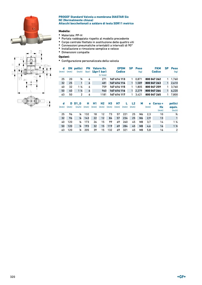 PROGEF Standard Valvola a membrana DIASTAR Six
