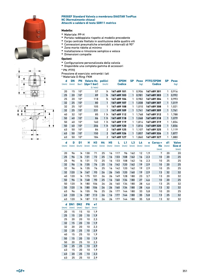 PROGEF Standard Valvola a membrana DIASTAR TenPlus
