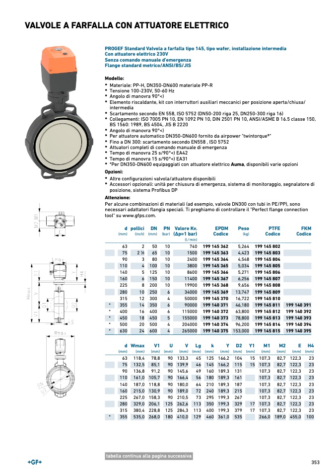 PROGEF Standard Valvola a farfalla tipo 145, tipo wafer, installazione intermedia