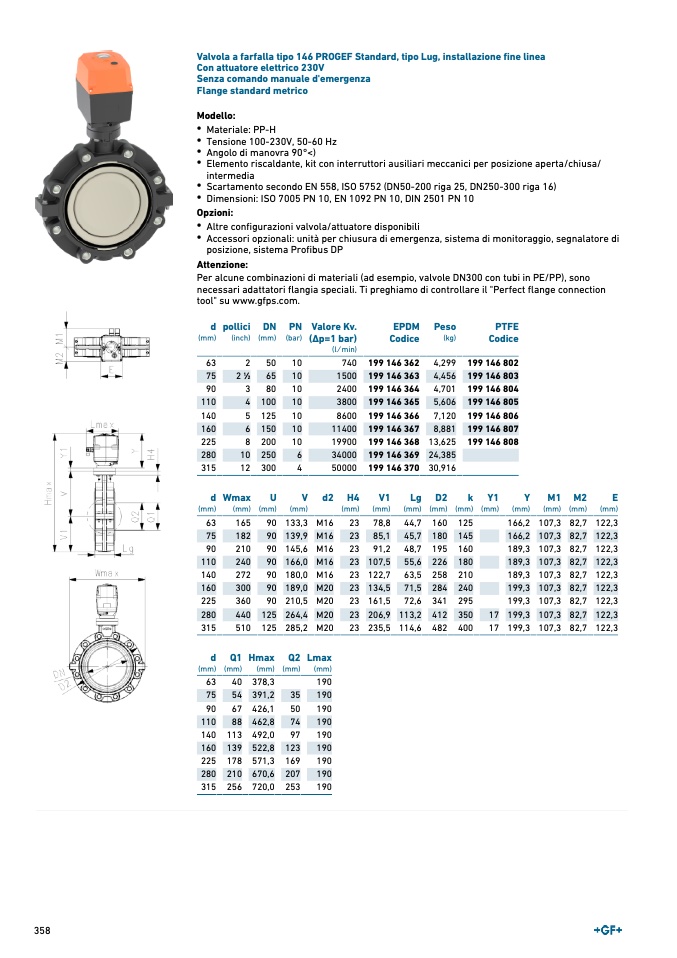 Valvola a farfalla tipo 146 PROGEF Standard, tipo Lug, installazione fine linea