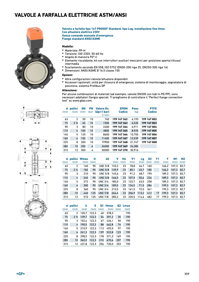 Valvola a farfalla tipo 147 PROGEF Standard, tipo Lug, installazione fine linea