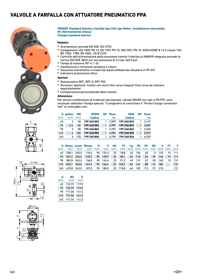 PROGEF Standard Valvola a farfalla tipo 240, tipo Wafer, installazione intermedia