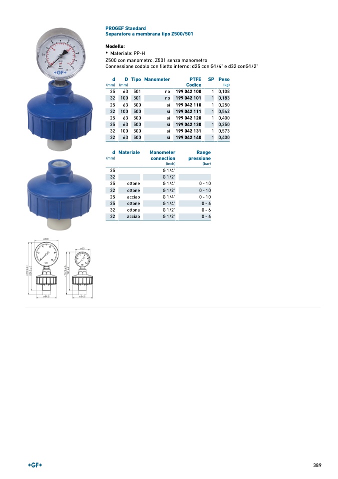 Z500 con manometro, Z501 senza manometro