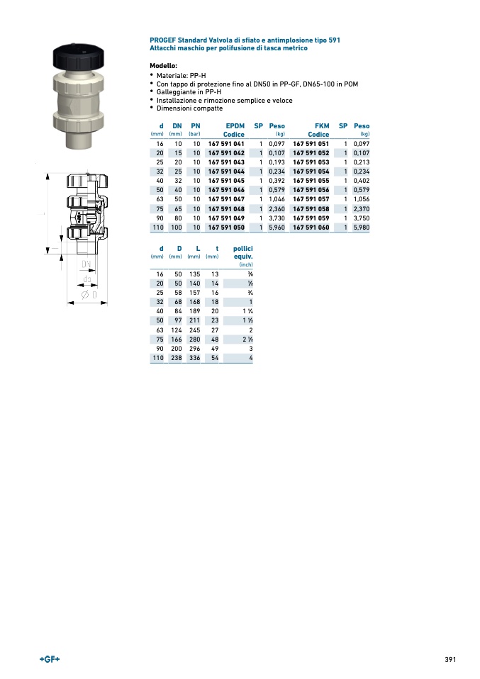 PROGEF Standard Valvola di sfiato e antimplosione tipo 591