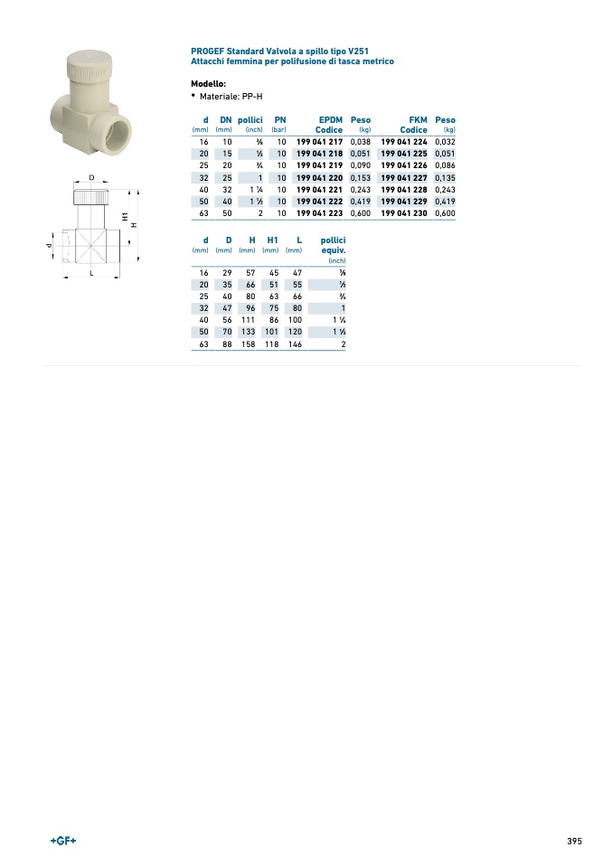 PROGEF Standard Valvola a spillo tipo V251
