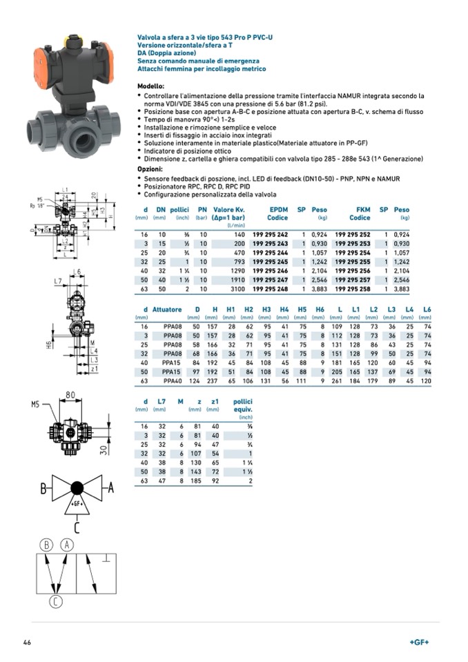 Valvola a sfera a 3 vie tipo 543 Pro P PVC-U