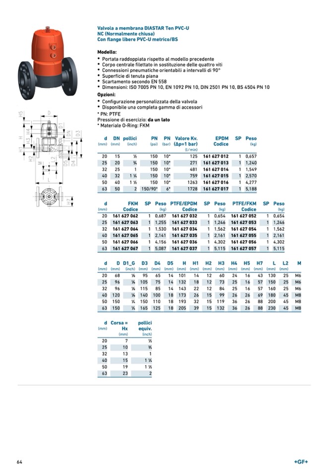 Dimensioni: ISO 7005 PN 10, EN 1092 PN 10, DIN 2501 PN 10, BS 4504 PN 10