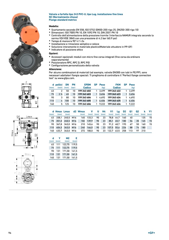 Valvola a farfalla tipo 243 PVC-U, tipo Lug, installazione fine linea