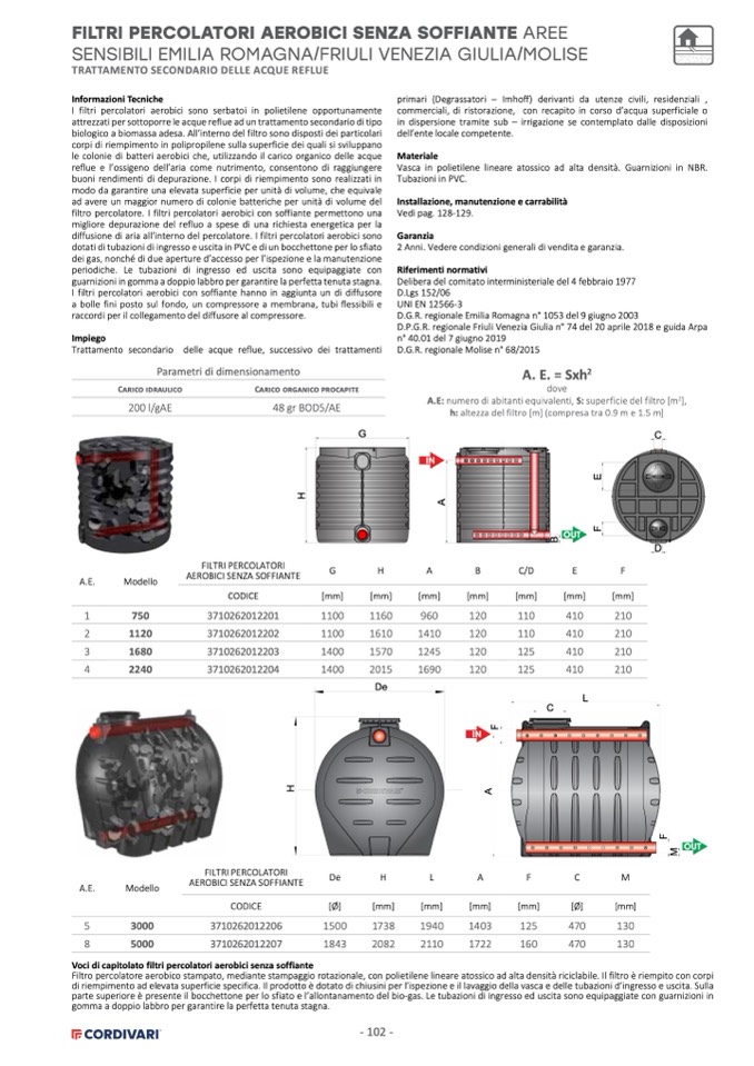 Voci di capitolato filtri percolatori aerobici senza soffiante