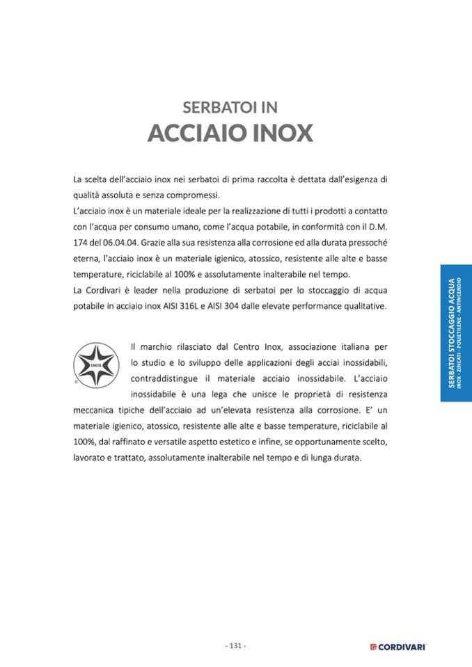 174 del 06.04.04. Grazie alla sua resistenza alla corrosione ed alla durata pressoché