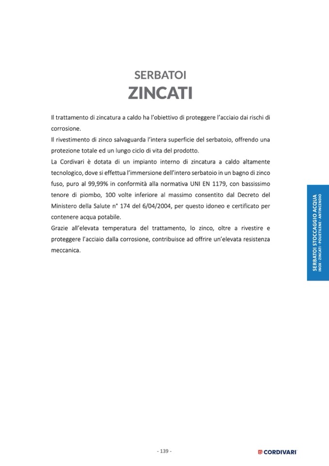 Il rivestimento di zinco salvaguarda l’intera superficie del serbatoio, offrendo una