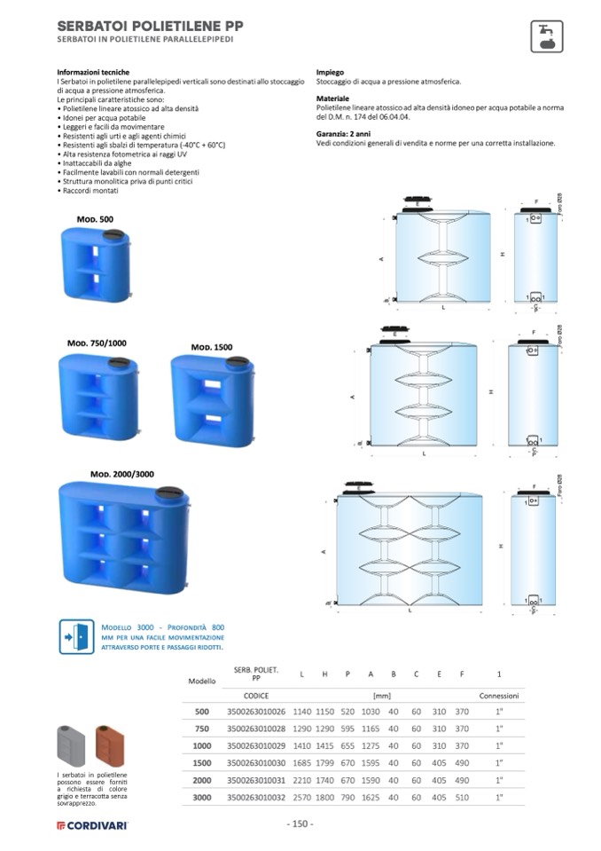 I Serbatoi in polietilene parallelepipedi verticali sono destinati allo stoccaggio