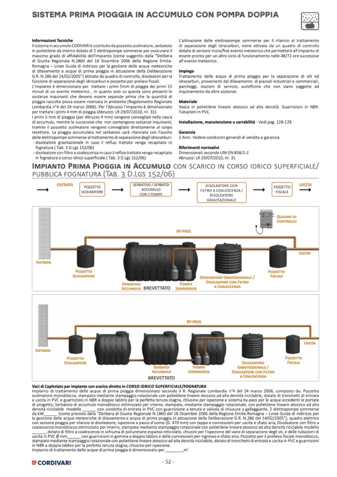 Il sistema in accumulo CODIVARI è costituito da pozzetto scolmatore, serbatoio