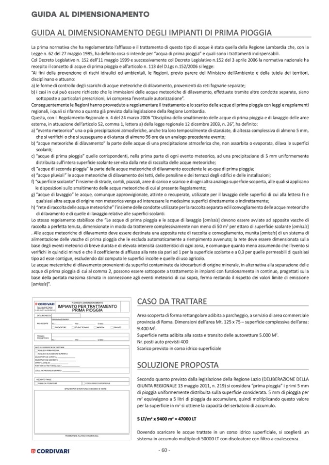 alimentazione delle vasche di prima pioggia che le escluda automaticamente a riempimento avvenuto; la rete deve essere dimensionata sulla
