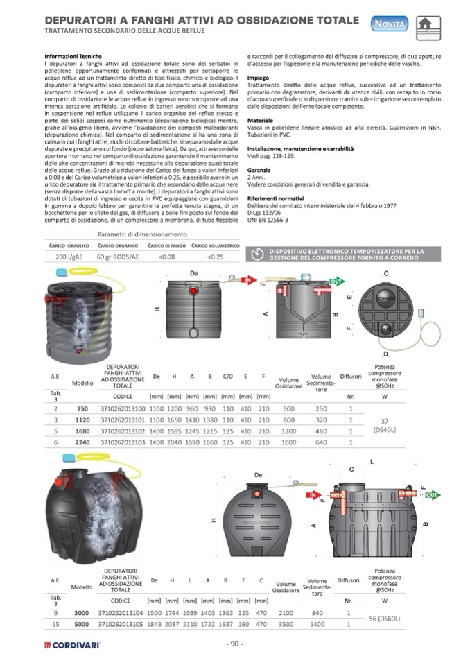 (senza disporre della vasca Imhoff a monte). I depuratori a fanghi attivi sono
