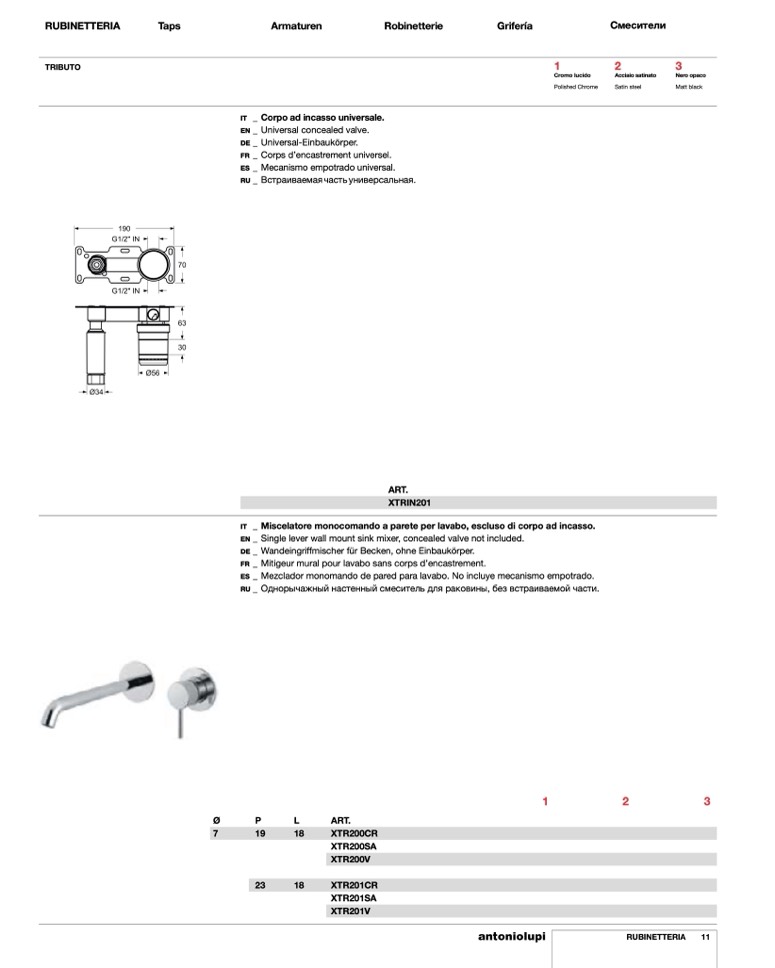 _ Mitigeur mural pour lavabo sans corps d’encastrement.